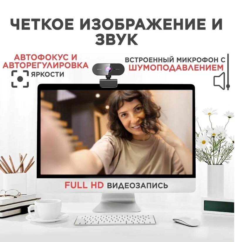 Веб-камера HD 1080P с микрофоном для ноутбука и компьютера информация: