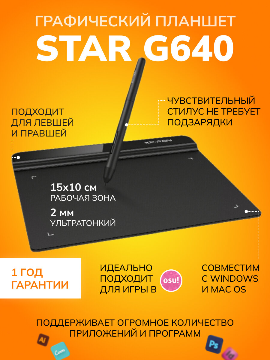 0 отзывов, средняя оценка 0. Чтобы купить «Графический планшет для рисования XPPen Star G640» по лучшей цене мы сканируем авито, алиэкспресс, маркет, озон, савеловский, плеер, горбушку, беру, официальные сайты и находим минимальную. Администрация не несет ответсвенность актуальность цен на Графический планшет для рисования XPPen Star G640, более подробно узнавайте на сайте магазина.