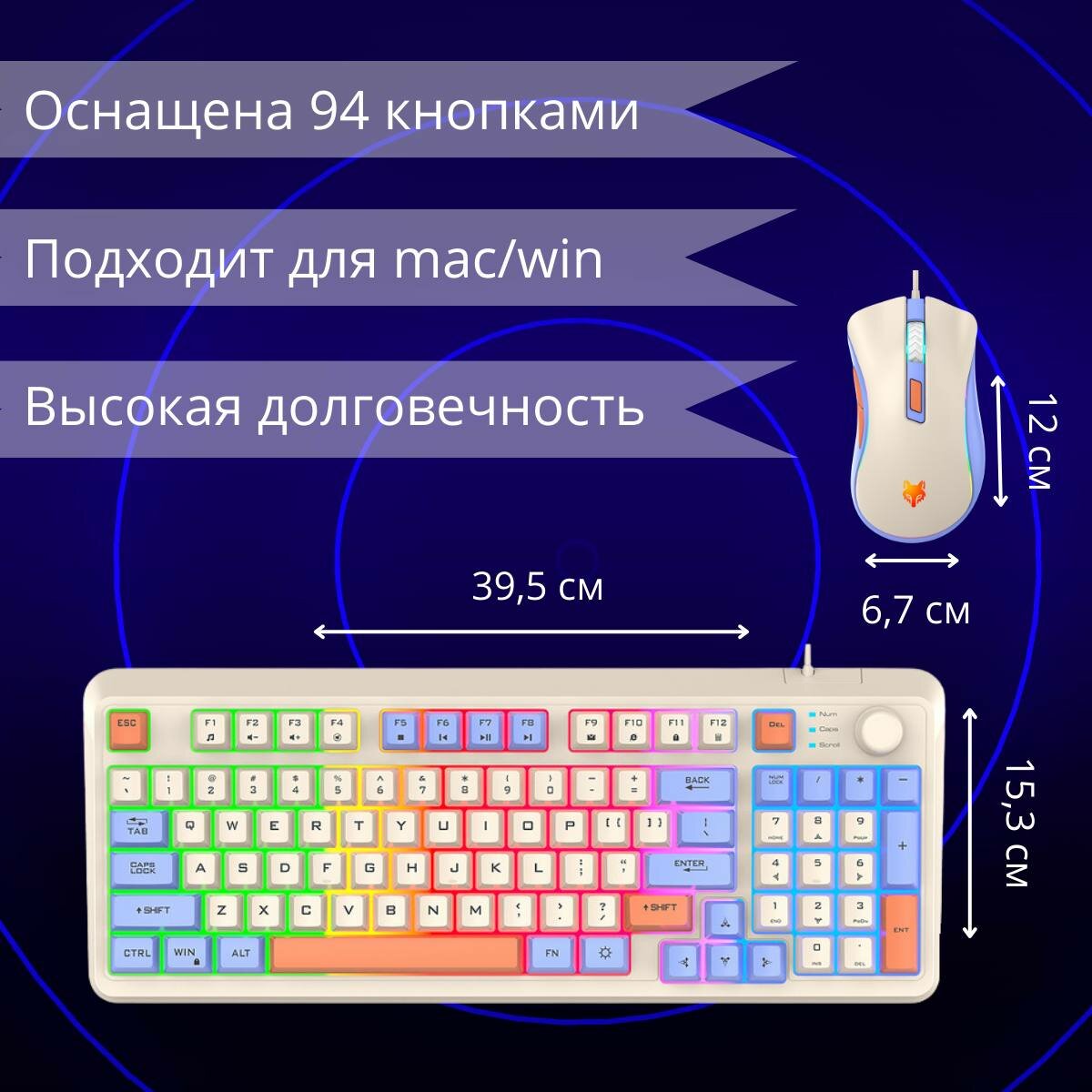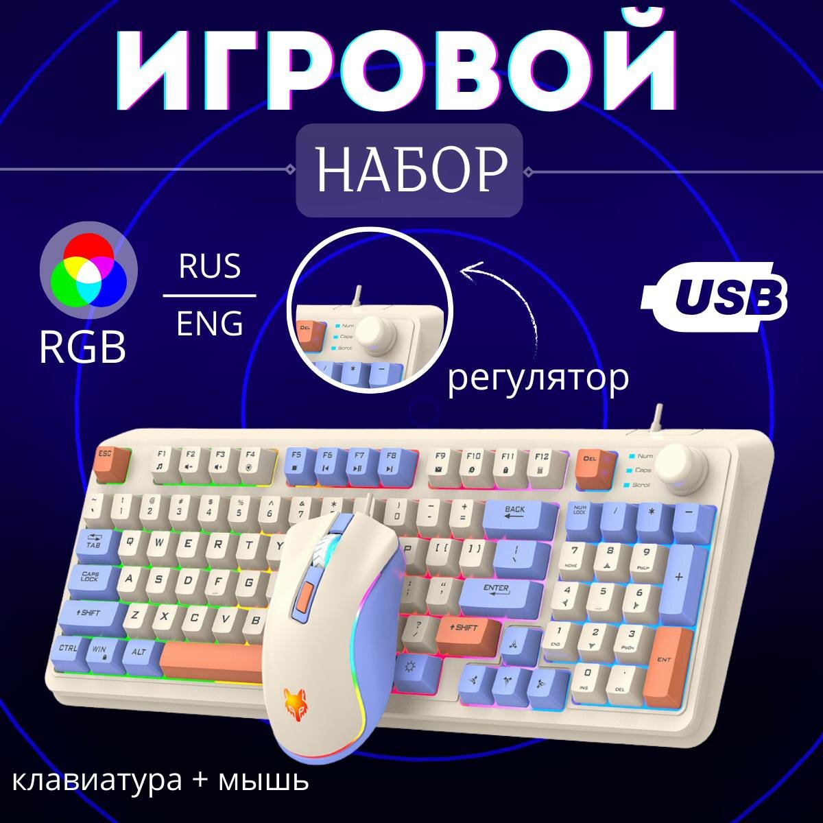 Игровой набор, XunFox K820 BlueBerry Клавиатура+мышь (RUS), проводной информация: