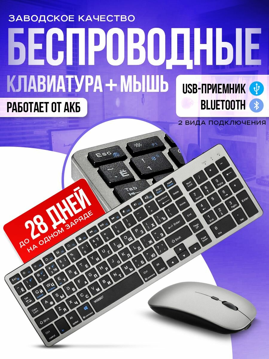 Отзывы на Клавиатура и мышь беспроводная, Type-C, силиконовая накладка, серый цвет