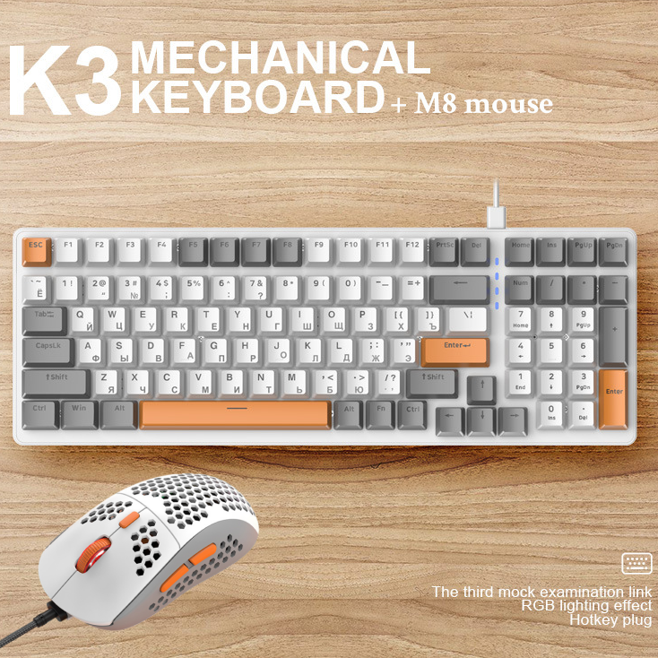Отзывы на Комплект мышь клавиатура механическая русская К3 мышка игровая М8 с подсветкой проводная набор для компьютера ноутбука Gaming/game mouse keyboard