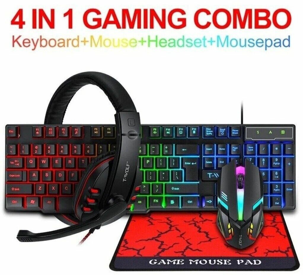 10 цен на Комплект для геймеров клавиатура, наушники, мышь и коврик для мышки