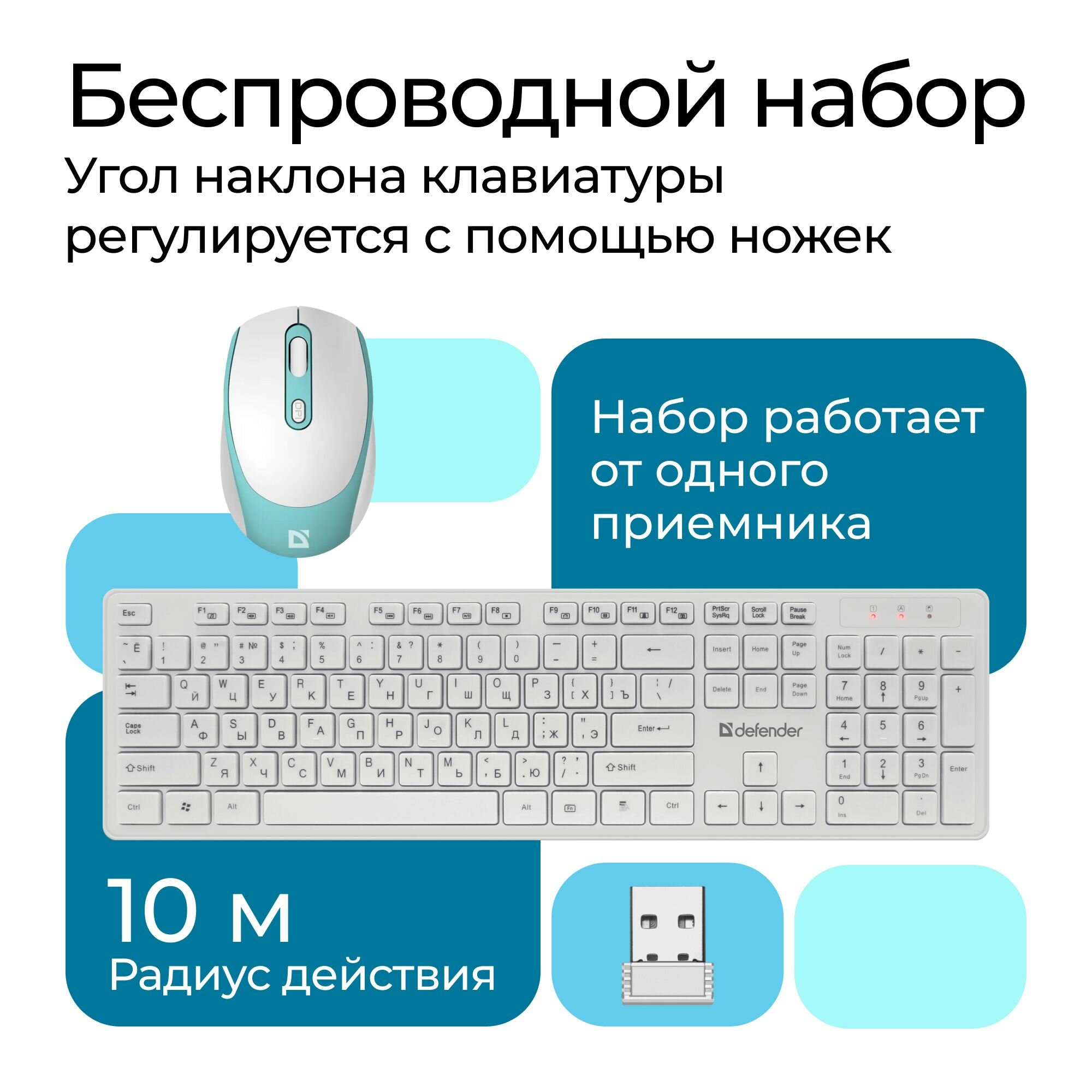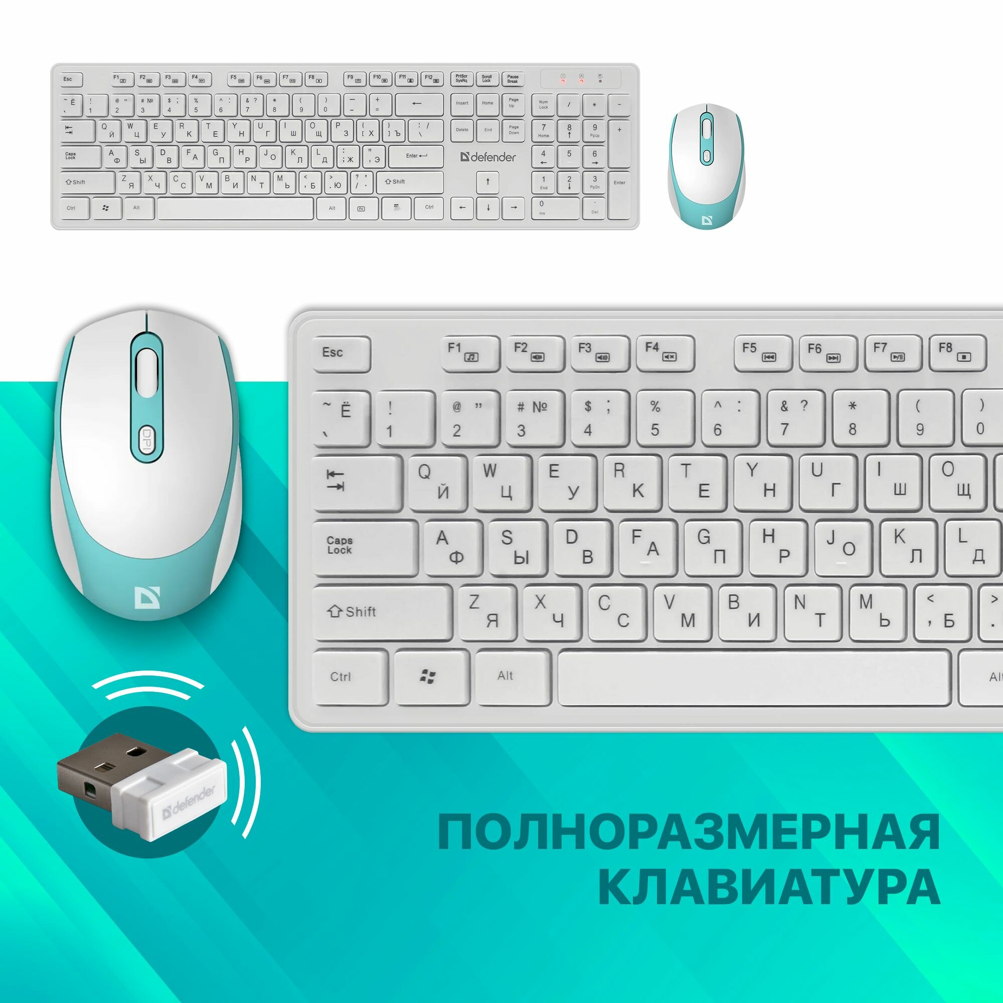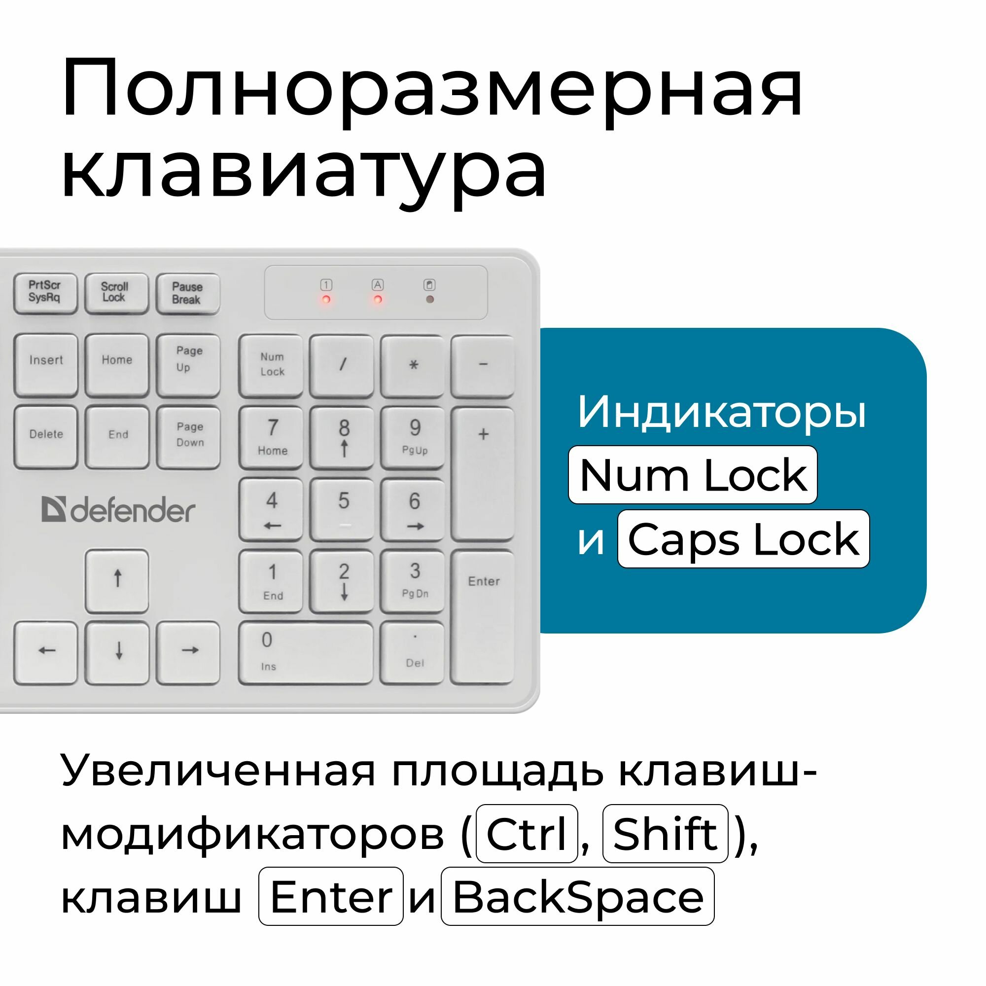 Беспроводная клавиатура и мышь Defender Auckland C-987 RU,белый комплект мультимедиа информация: