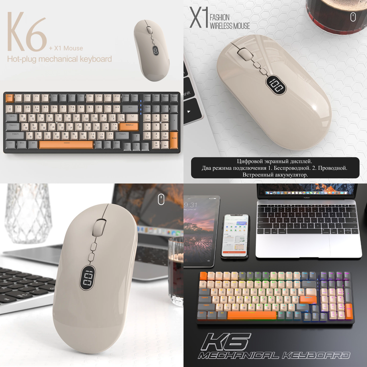 Отзывы на Комплект мышь клавиатура беспроводная механическая русская Wolf К6 + Hot-Swap мышка Х1 с подсветкой набор для компьютера ноутбука mouse, keyboard