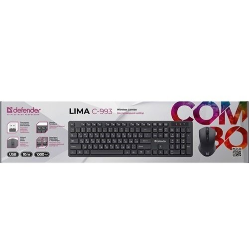 Беспроводная клавиатура и мышь Defender Lima C-993 RU чёрный комплект мультимедиа информация: