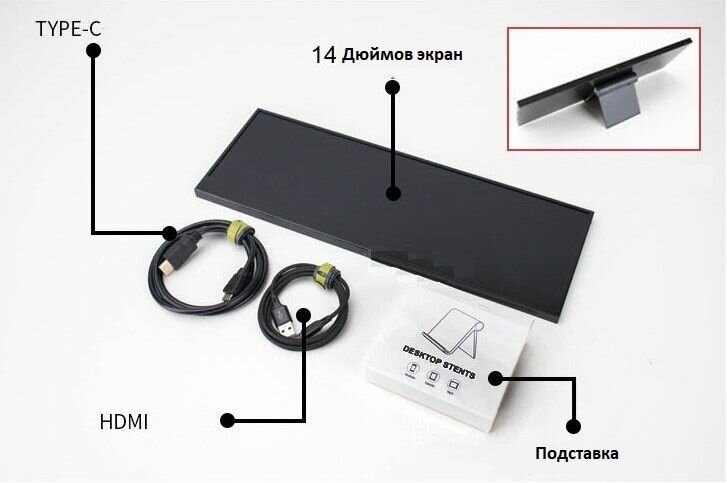 Подэкран с разрешением 4K 60 Гц (белый) 14 дюймов, экран мониторинга, дополнительный экран. информация: