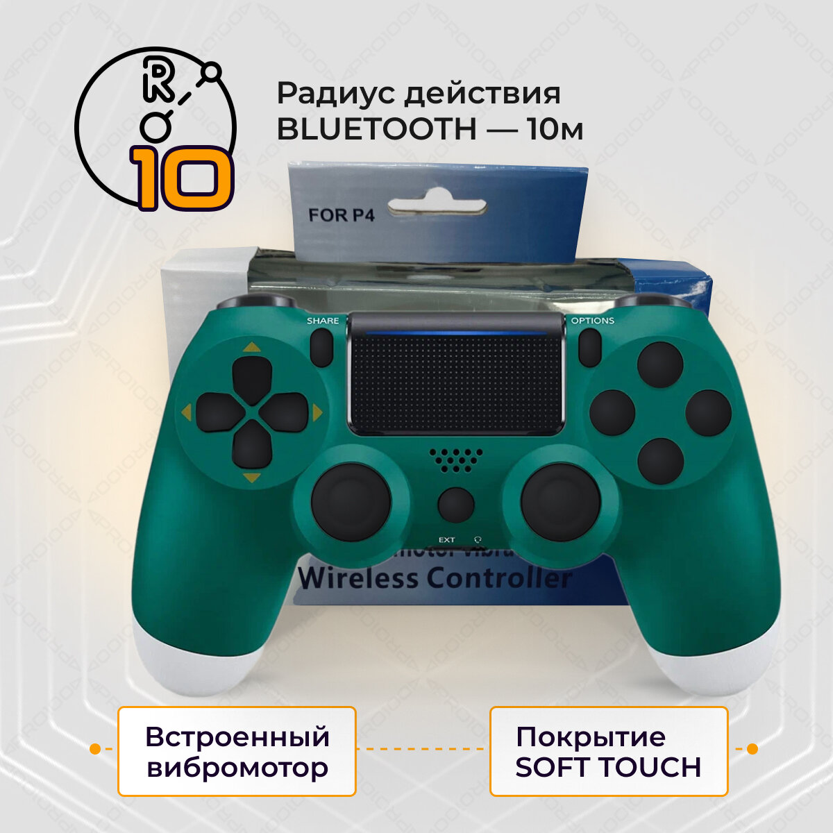 Беспроводной геймпад для PS4 и ПК / Джойстик Bluetooth для Playstation 4, Apple (IPhone, IPad), Androind, ПК - зеленый информация: