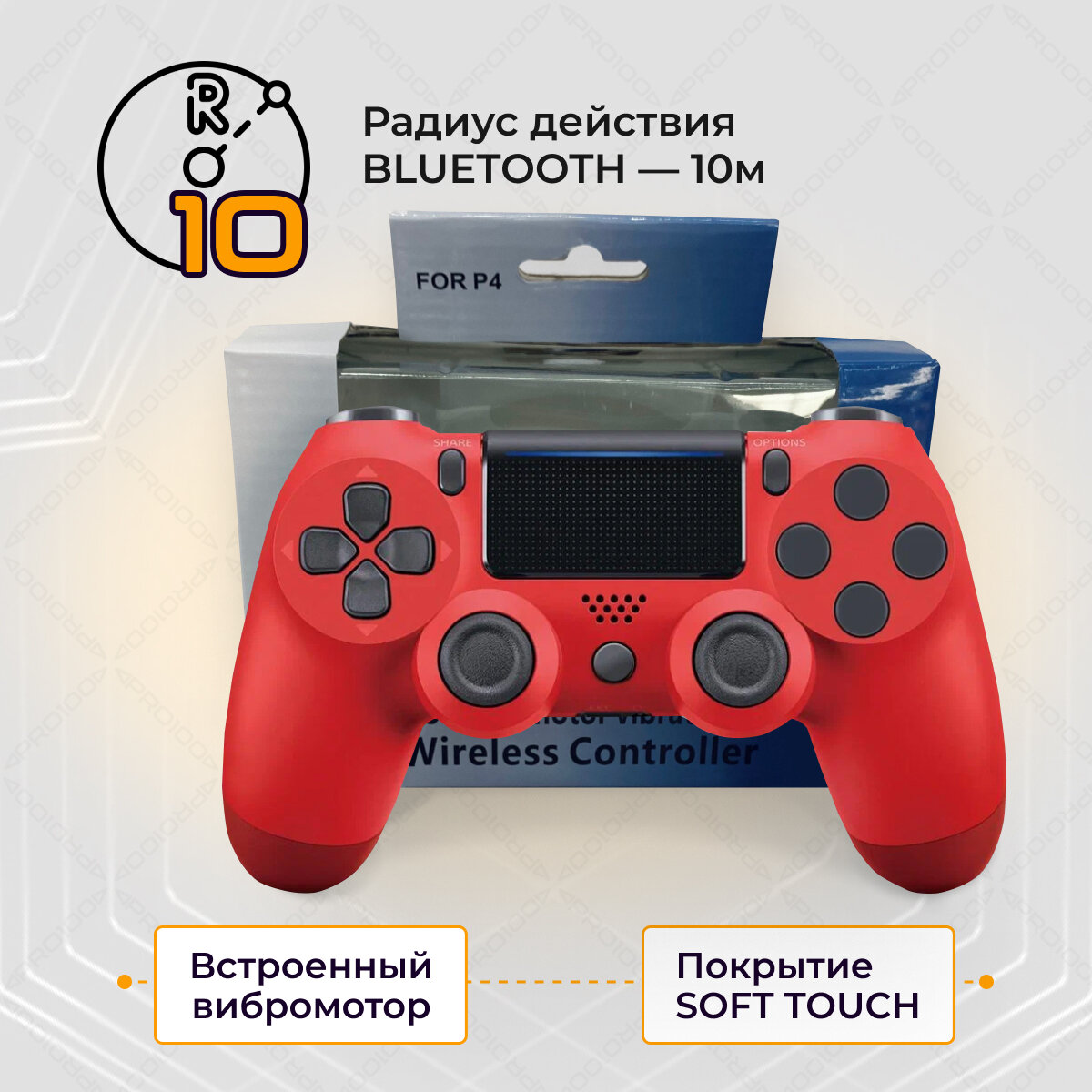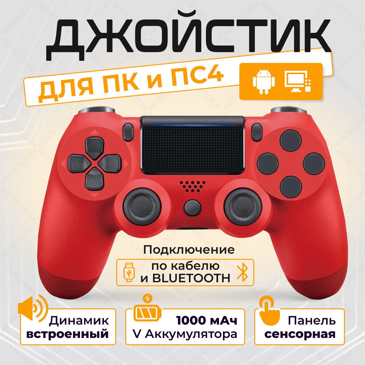 Беспроводной геймпад для PS4 и ПК / Джойстик Bluetooth для Playstation 4, Apple (IPhone, IPad), Androind, ПК - красный информация: