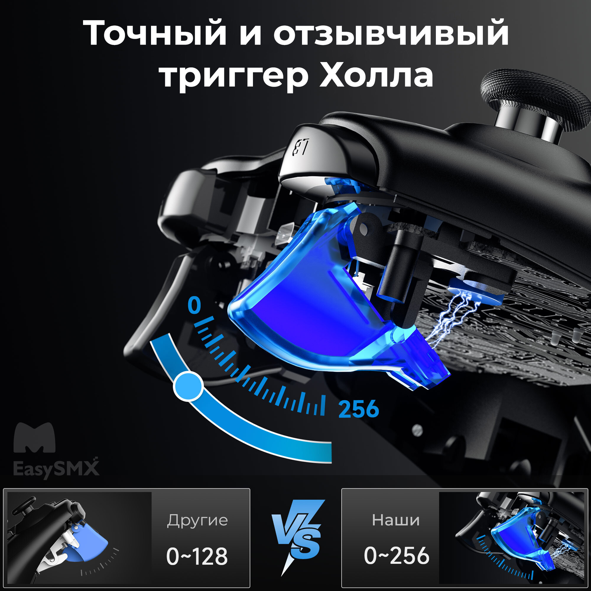 Беспроводной геймпад EasySMX ESM-9013Pro / Для ПК, Смартфона iOS и Android / Bluetooth, 2,4Ггц / датчики Холла, цвет черный (VG-C418) информация: