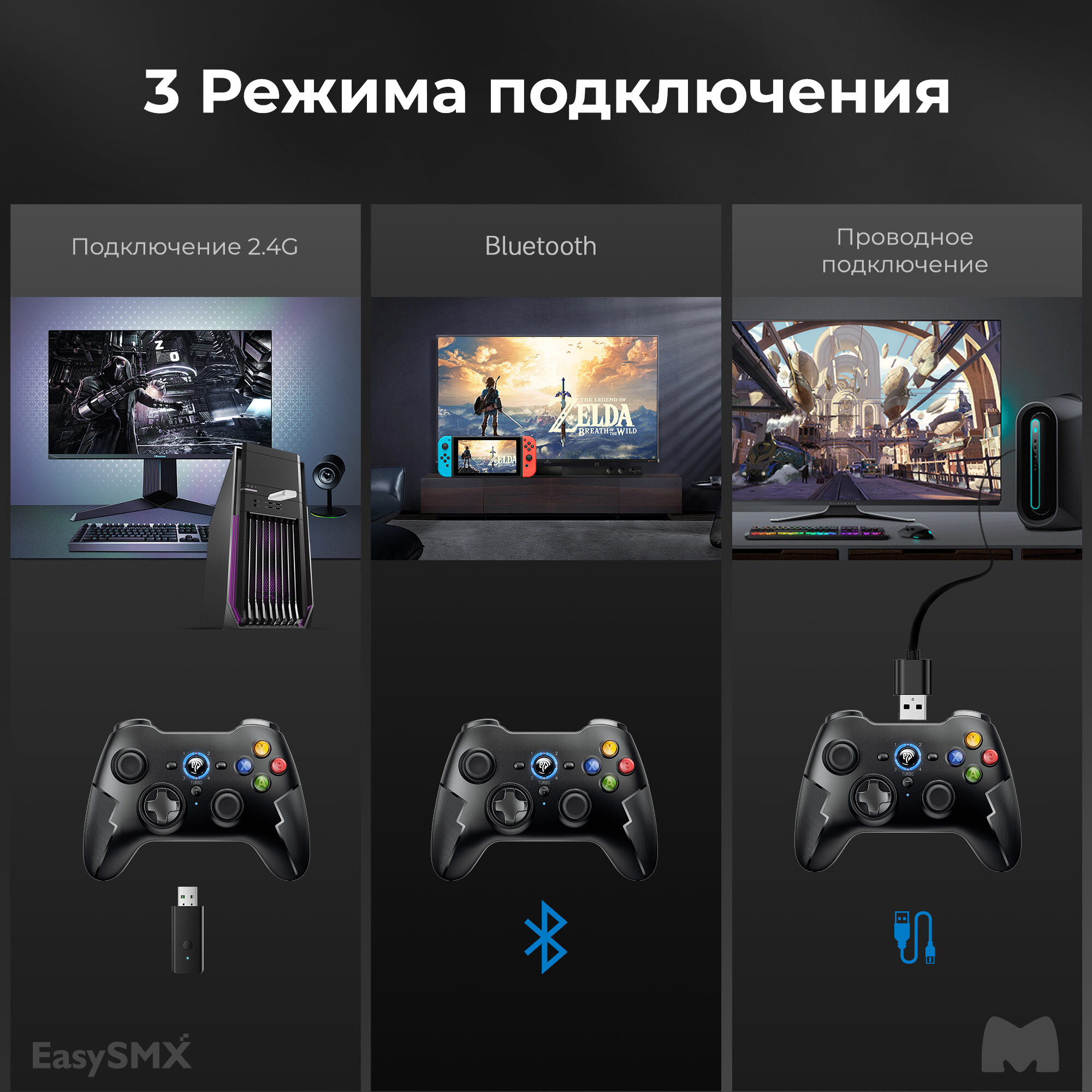 10 цен на Беспроводной геймпад EasySMX ESM-9013Pro / Для ПК, Смартфона iOS и Android / Bluetooth, 2,4Ггц / датчики Холла, цвет черный (VG-C418)