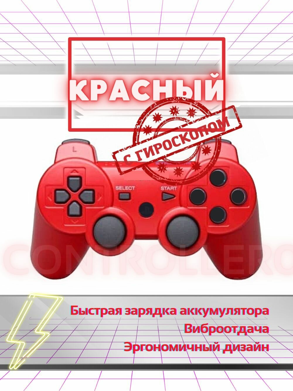 Беспроводной геймпад Dualshock 3, джойстик для игровой приставки Sony Playstation 3 и ПК, красная молния 1 299 ₽