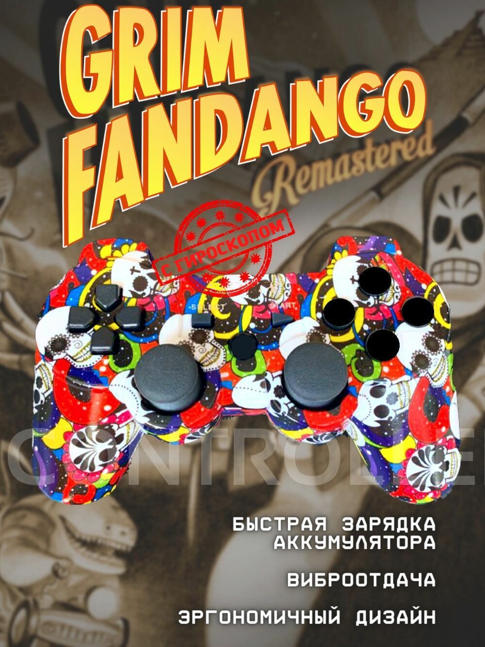 Беспроводной геймпад джойстик для игровой приставки и ПК, GrimFandango 1 299 ₽