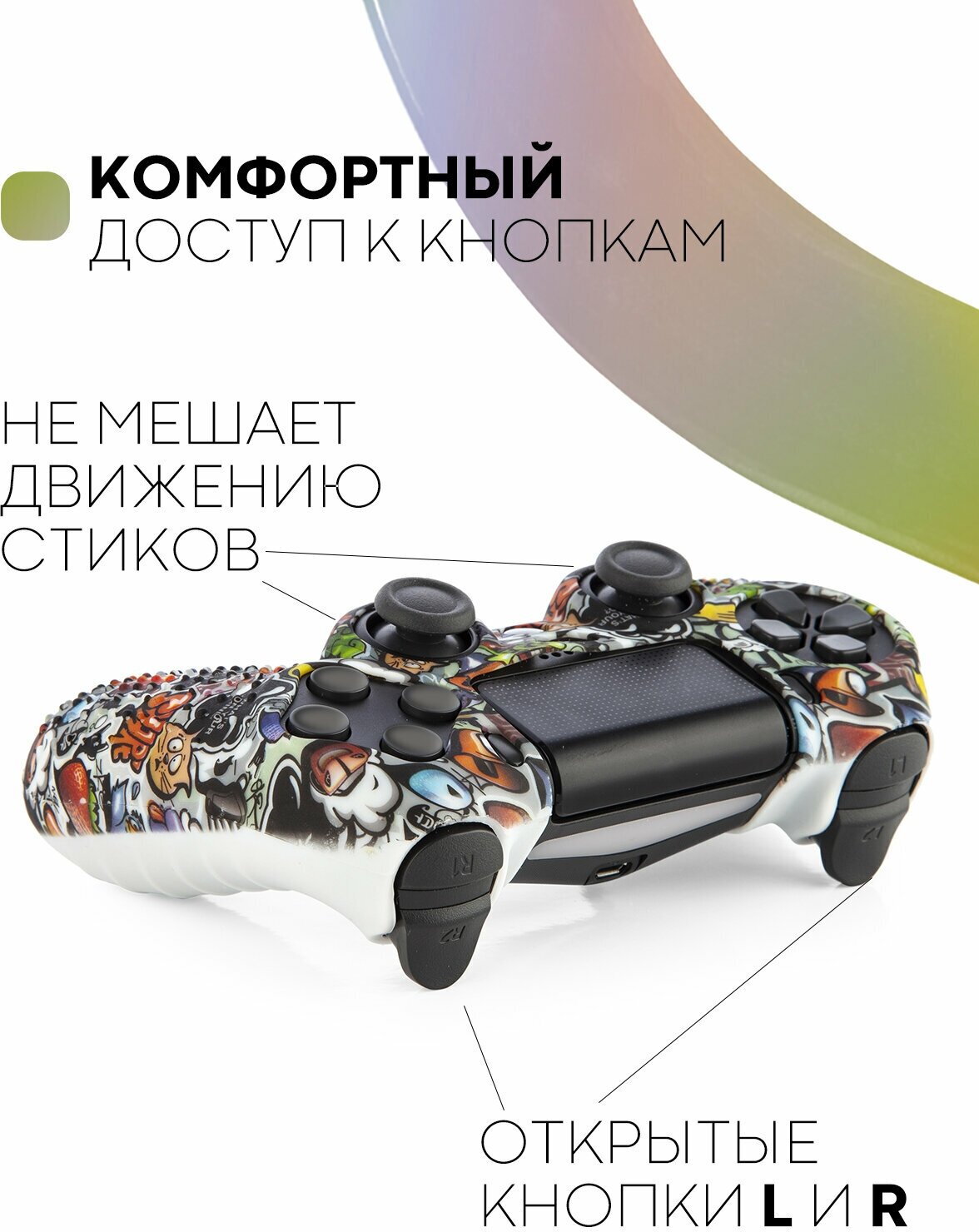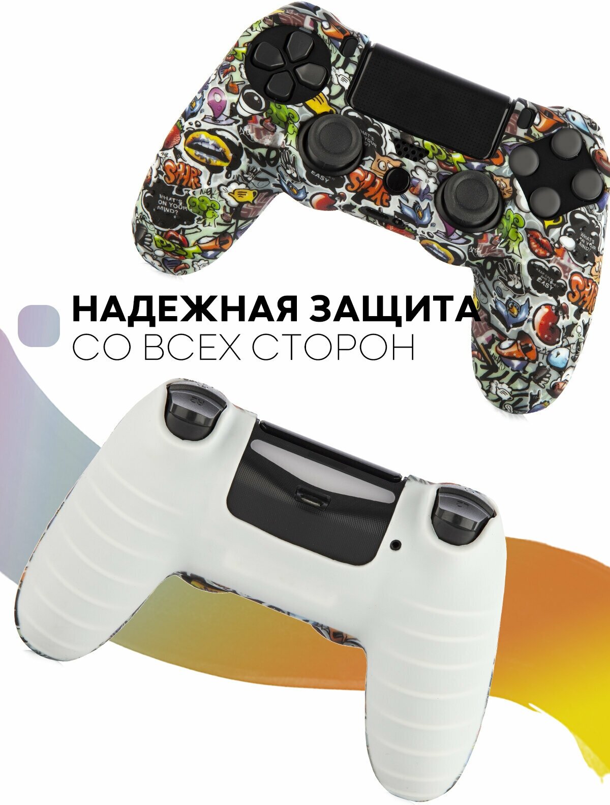 Защитный силиконовый чехол для геймпада PS4 (матовая накладка для контроллера ПС4) с рисунком, граффити 510 ₽