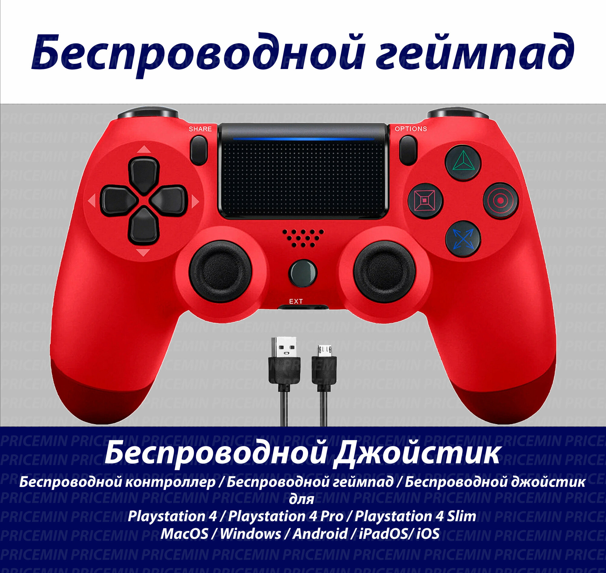 Джойстик для Playstation 4, Геймпад подходит для PS4, PC, MacBook, Android, IOS, беспроводной джойстик bluetooth для ПК, DUAL, Красный информация: