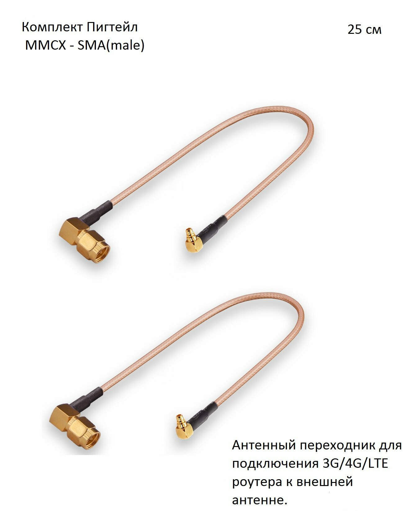 Комплект пигтейл-переходников - MMCX - SMA(male) угловой, 25 см (2 шт.) информация:
