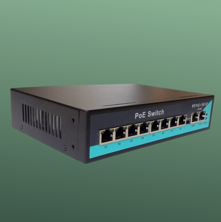 10 цен на Коммутатор YDA POE 8POE+2Uplink 1000 Мбит/с, WatchDog+VLAN, 250 метров,120 Ватт, процессор IC REALTEK