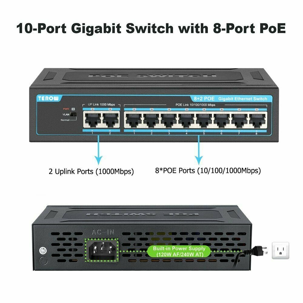 POE (свитч) 8POE 1000Мбит/с +2Uplinк 1000 Мбит/с (гигабит), WatchDog, 120 Ватт, switch IC REALTEK