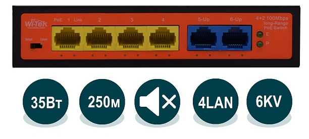 Коммутатор Wi-Tek WI-PS205H v2, количество портов: 6x100 Мбит/с (WI-PS205H v2) информация: