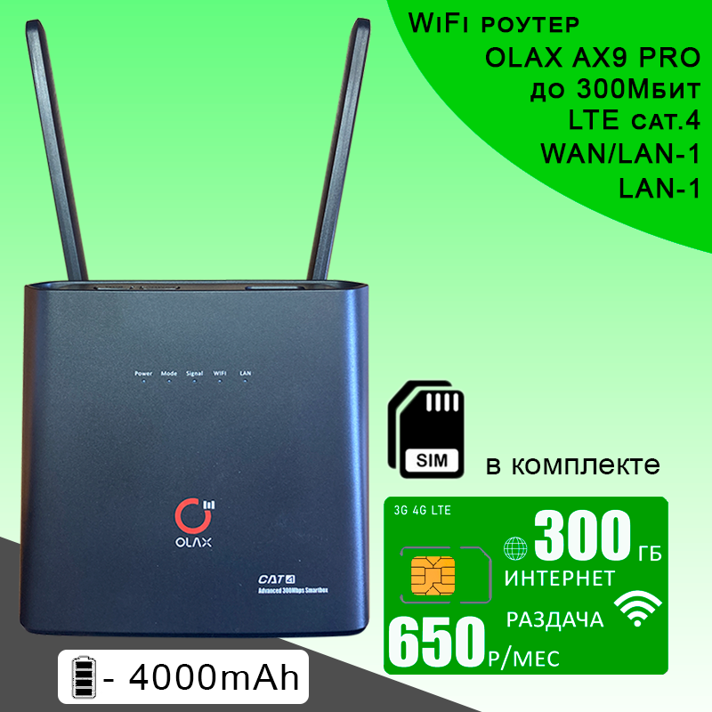 10 цен на Комплект с интернетом и раздачей за 650р/мес I Роутер OLAX AX9 PRO black с аккумулятором I сим карта