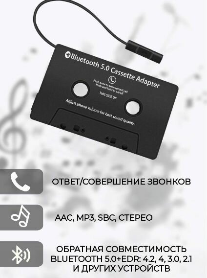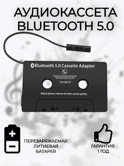 Аудиокассета Блютуз 5.0 адаптер аукс aux кассета переходник Bluetooth 5.0 беспроводной блютус. информация: