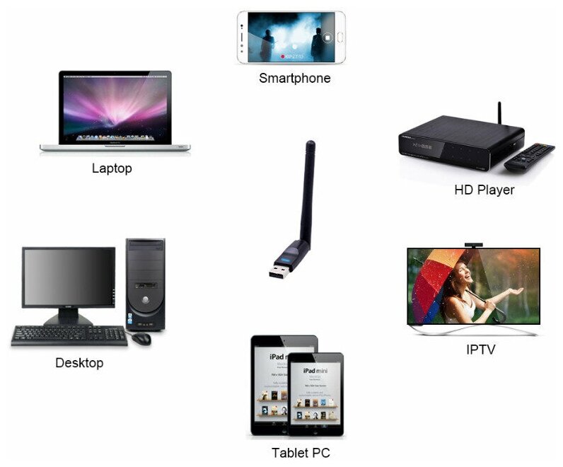 Wi-Fi адаптер, вай-фай антенна для Windows и Mac, USB Wireless-N Adapter Fixed Antenna 802.11n 2.4GHZ Soft AP WI-FI информация: