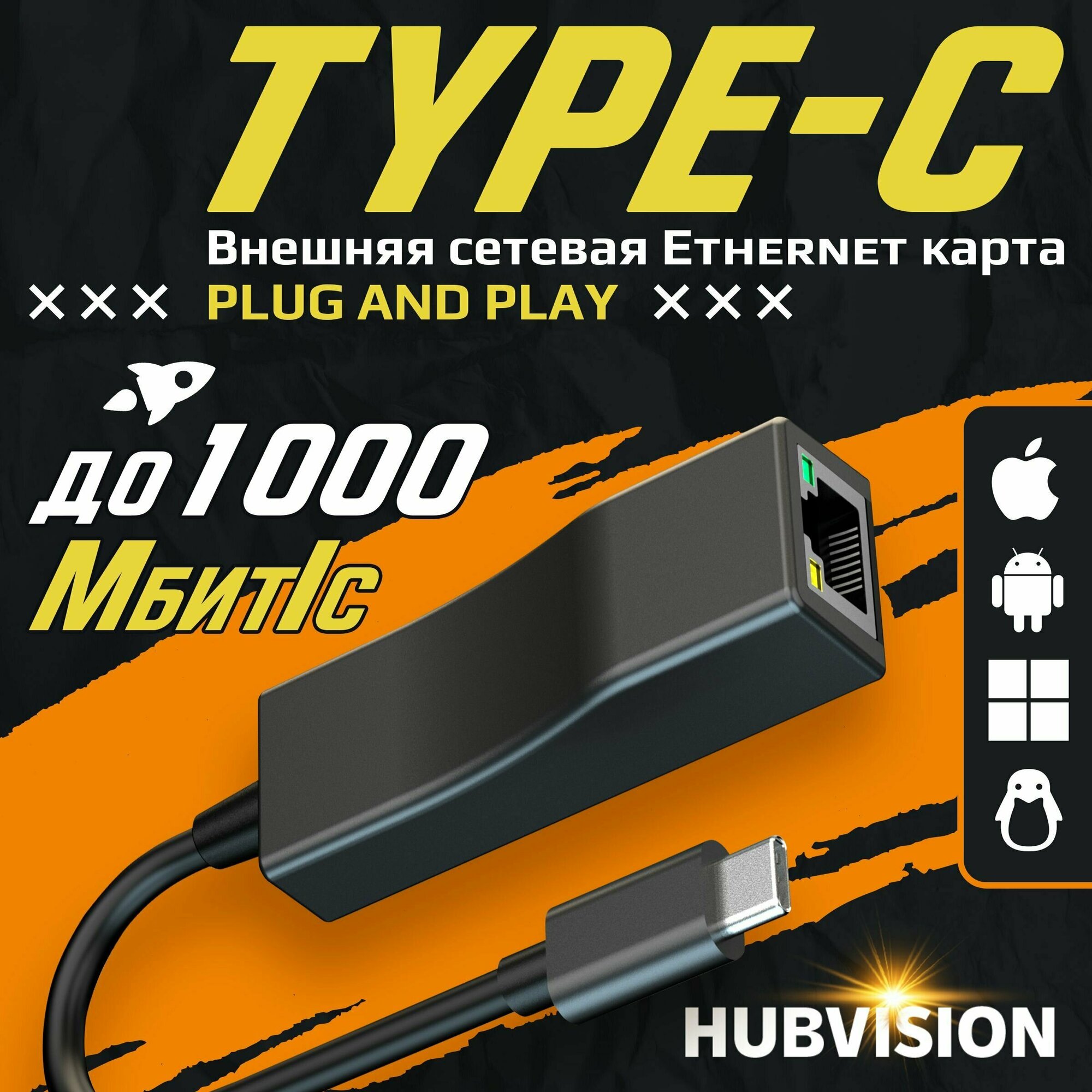 Внешняя сетевая Ethernet карта USB Type-C - LAN (RJ45), 1000 Мбит/с информация: