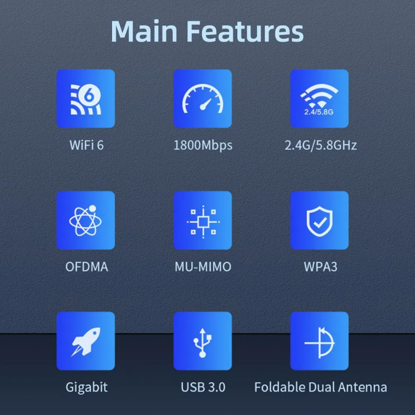 Адаптер WiFi 6 Comfast CF-953AX (1800Mbps) MT7921AU чипсет 2*3dbi информация: