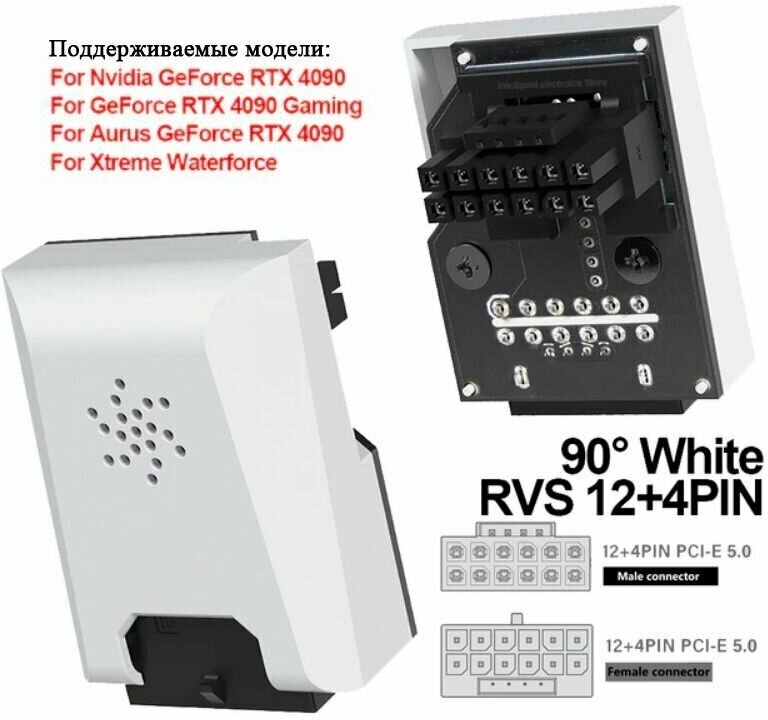 12VHPWR PCie 5.0 угловой адаптер 90 градусов белый RVS информация: