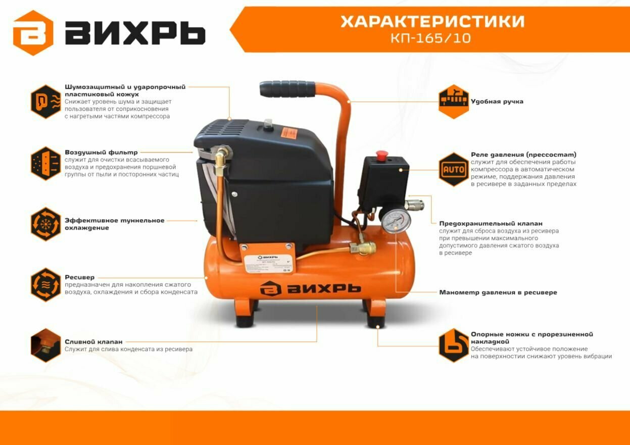 10 цен на Компрессор безмасляный Вихрь КП-165/10 арт. 74/3/19