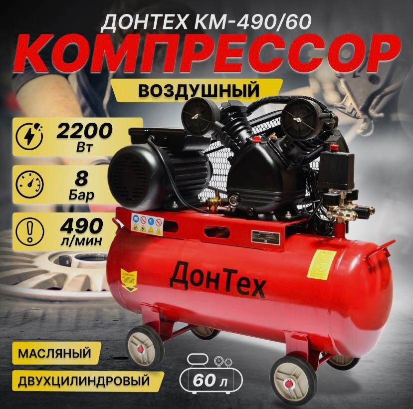 Отзывы на Воздушный компрессор ременной поршневой масляный ДонТех КМ-490/60 ( 490 л/мин, 60 литров, 8 бар, 2200 Вт )