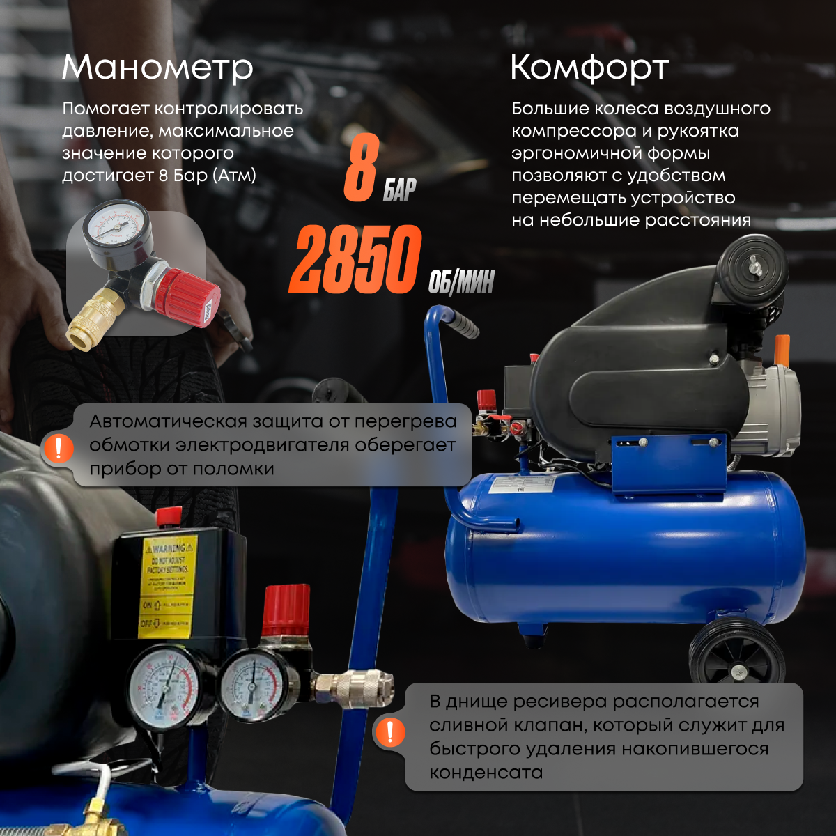 | Дополнительная информация | В комплекте ,компрессор ,колеса ,фильтр воздушный ,паспорт ! |