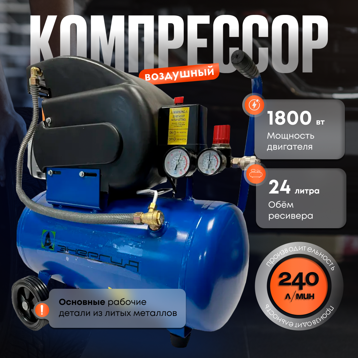 Компрессор воздушный поршневой А-Энергия 240/24 информация: