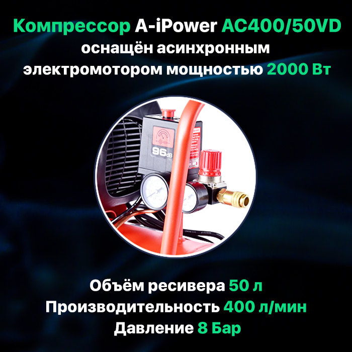 Компрессор поршневой масляный AC400/50VD строительный профессиональный (50105) информация: