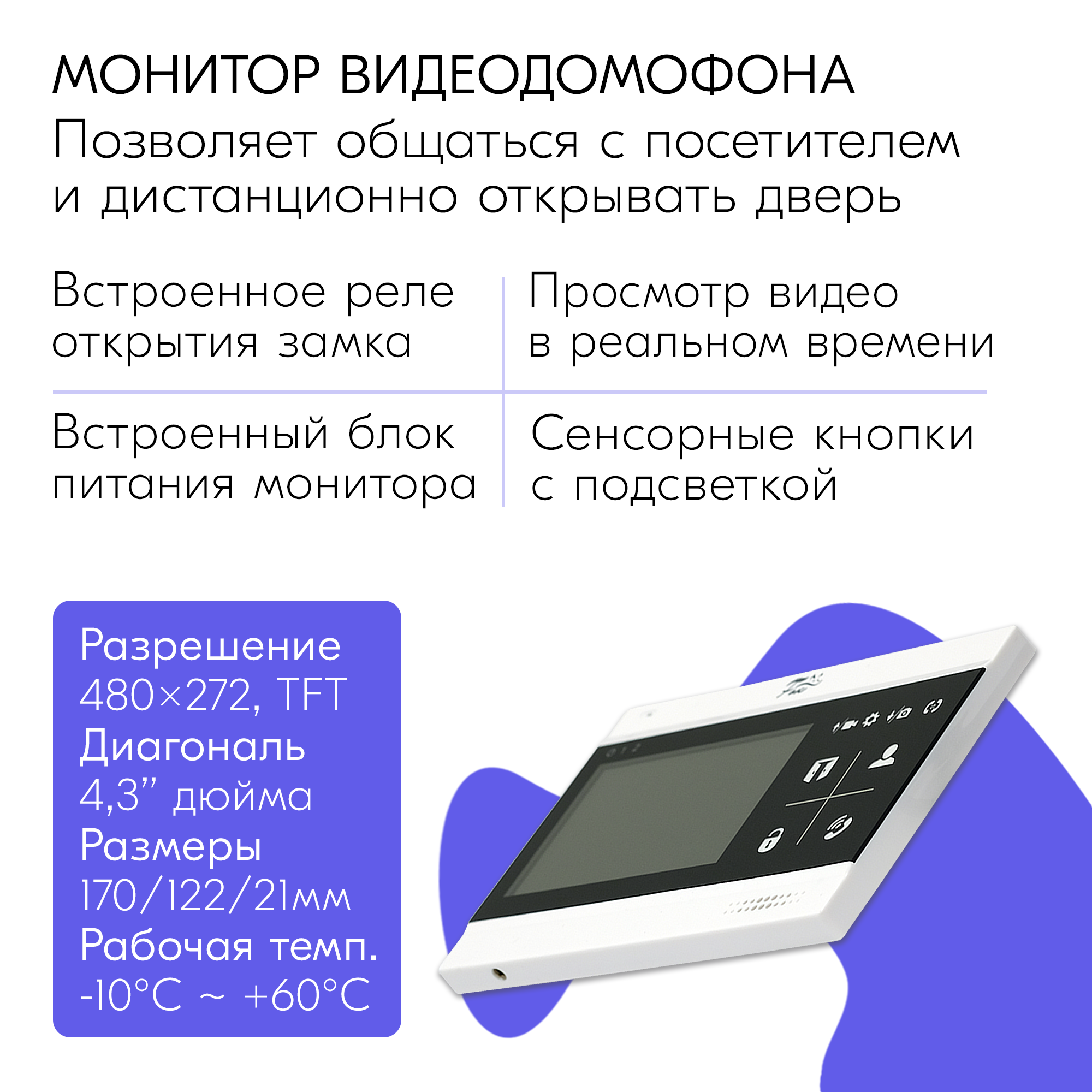 Отзывы на Комплект видеодомофона для дома FX-VD5S-KIT Черный, диагональ экрана 4.3 дюйма, электромеханический замок, антивандальная вызывная панель