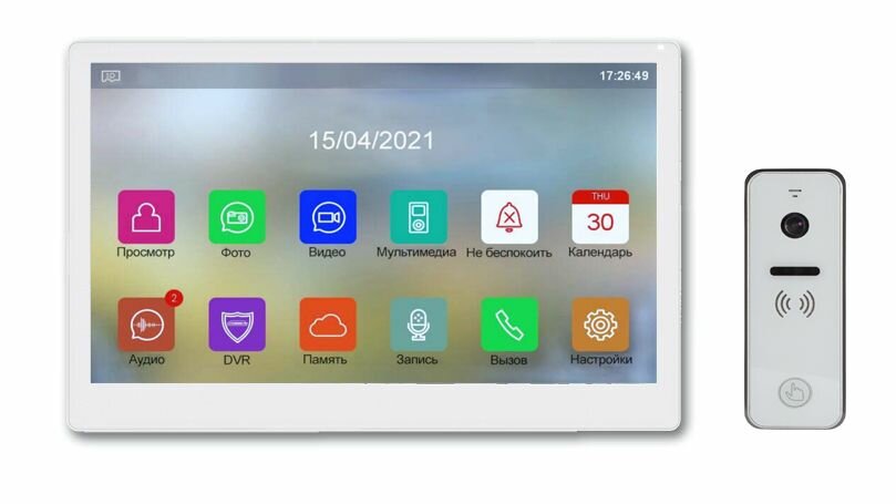 Комплект видеодомофона Wi-Fi, монитор с сенсорным 7-ми дюймовым экраном и вызывная панель со встроенным считывателем Белый