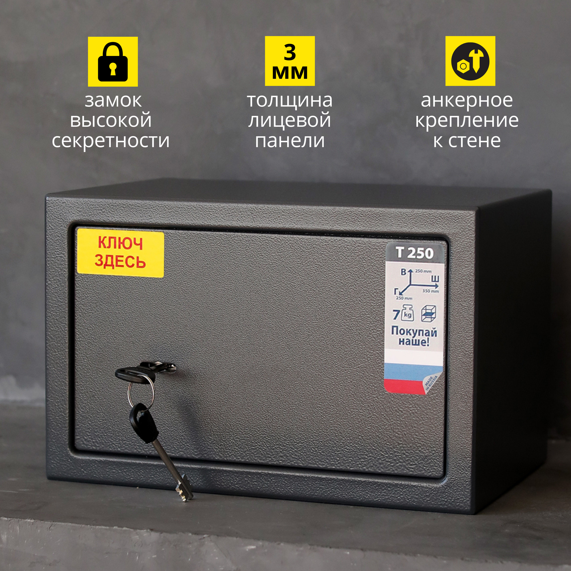 Цельностальной сейф, 3 слоя дополнительного пространства внутри, прочный и долговечный.