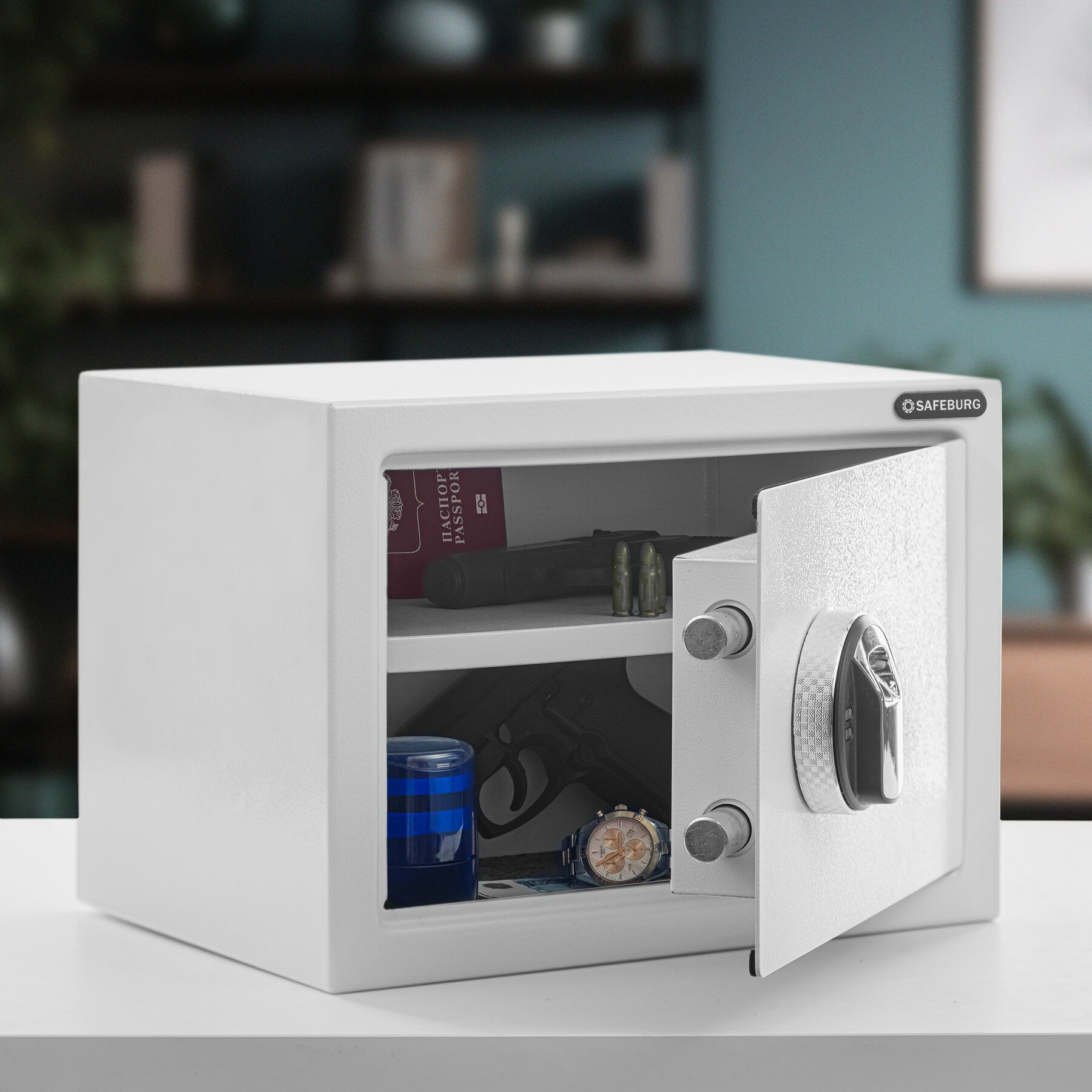 10 цен на Сейф мебельный SAFEBURG SB-250F WHITE для денег и документов, для дома и офиса, биометрический замок (сканер отпечатка пальца)