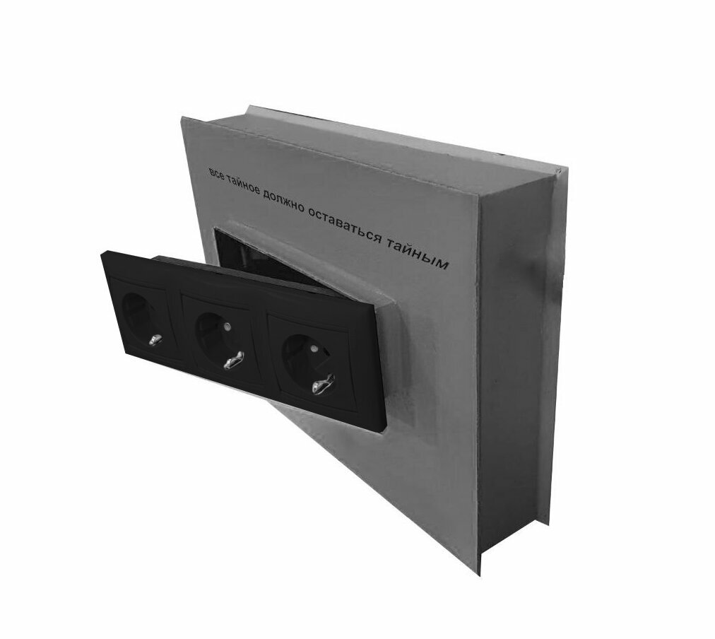 Скрытый сейф для денег и документов. Тайник-розетка на невидимом электромеханическом замке. Глубина 20 см. Черные розетки. 45 000 ₽