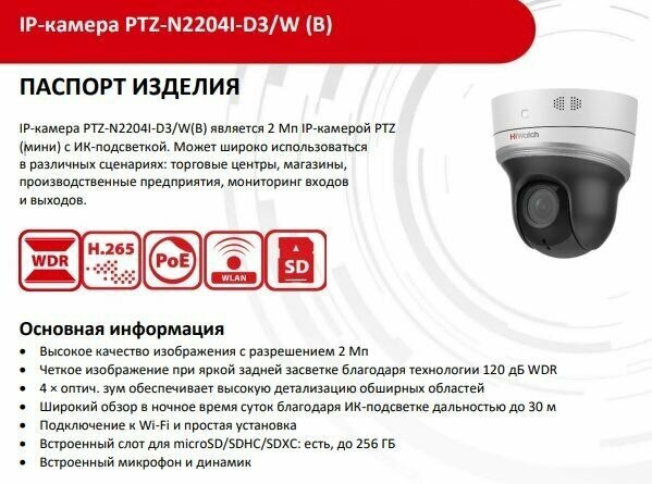 IP камера Hikvision (PTZ-N2204I-D3/W(B)) информация:
