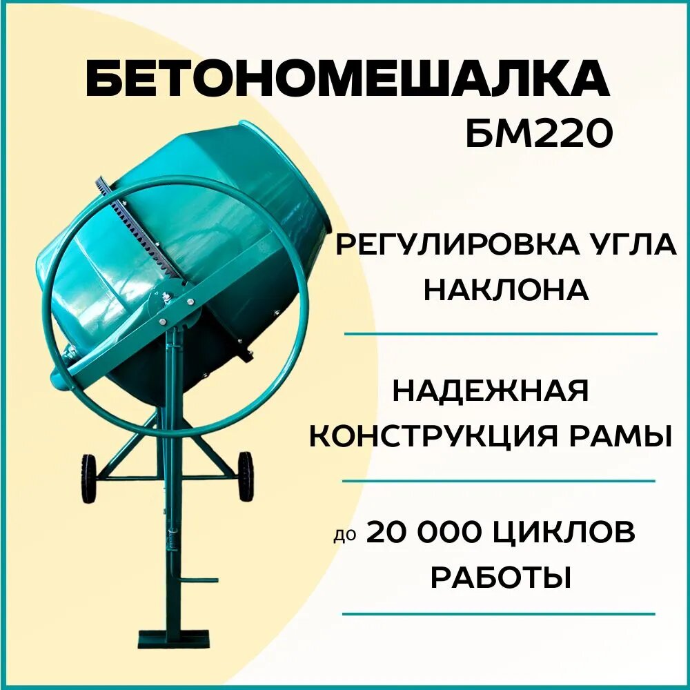 10 цен на Бетономешалка строительная HARD WORKER БМ220 чугунный венец, объем 190 литров, мощность 1000 Вт, бетоносмеситель электрический