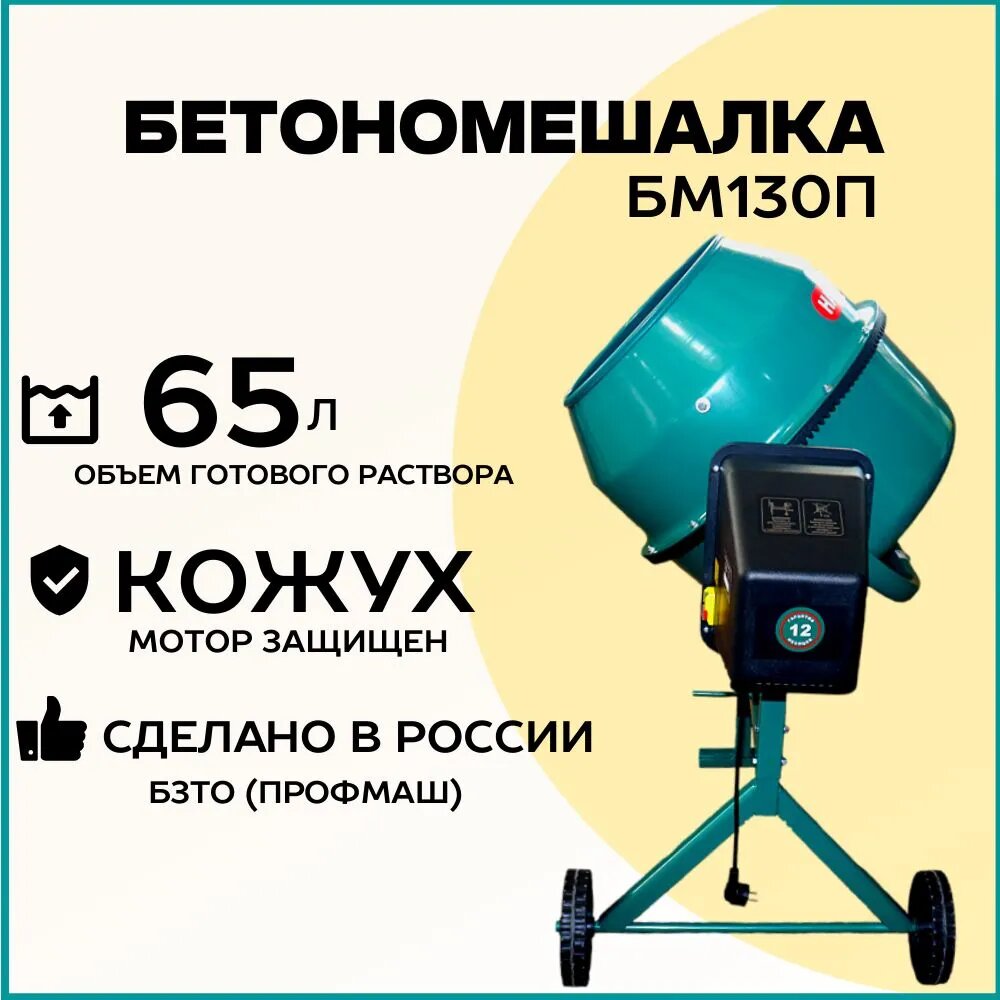 10 цен на Бетономешалка строительная HARD WORKER БМ130П полиамидный венец, объем 130 литров, мощность 550 Вт, бетоносмеситель электрический