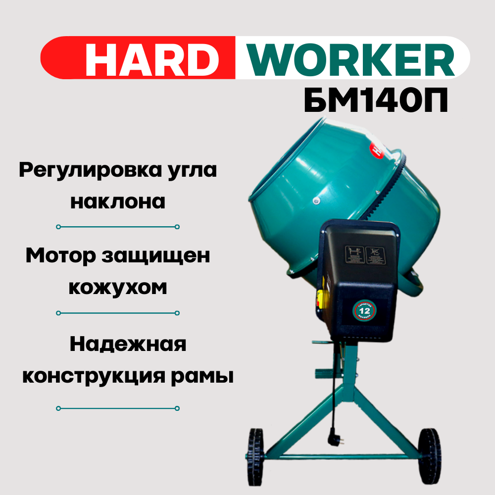 Отзывы на Бетоносмеситель/бетономешалка HARD WORKER БМ140П полиамидный венец, объем 120 литров, мощность 550 Вт