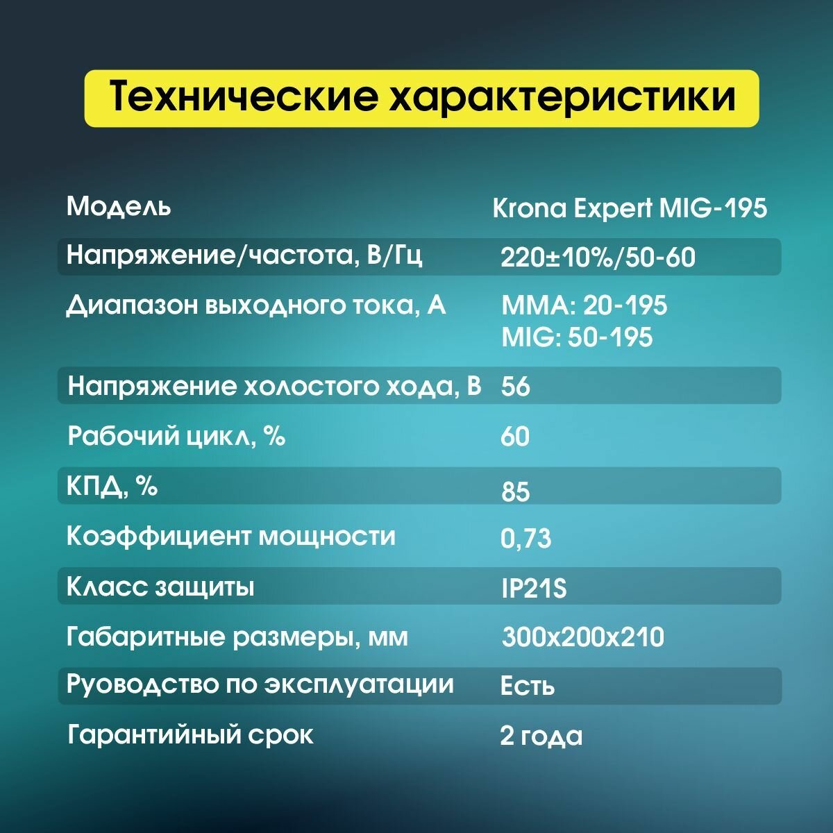 Сварочный аппарат полуавтомат Krona-195 Безгазовый 195 А информация: