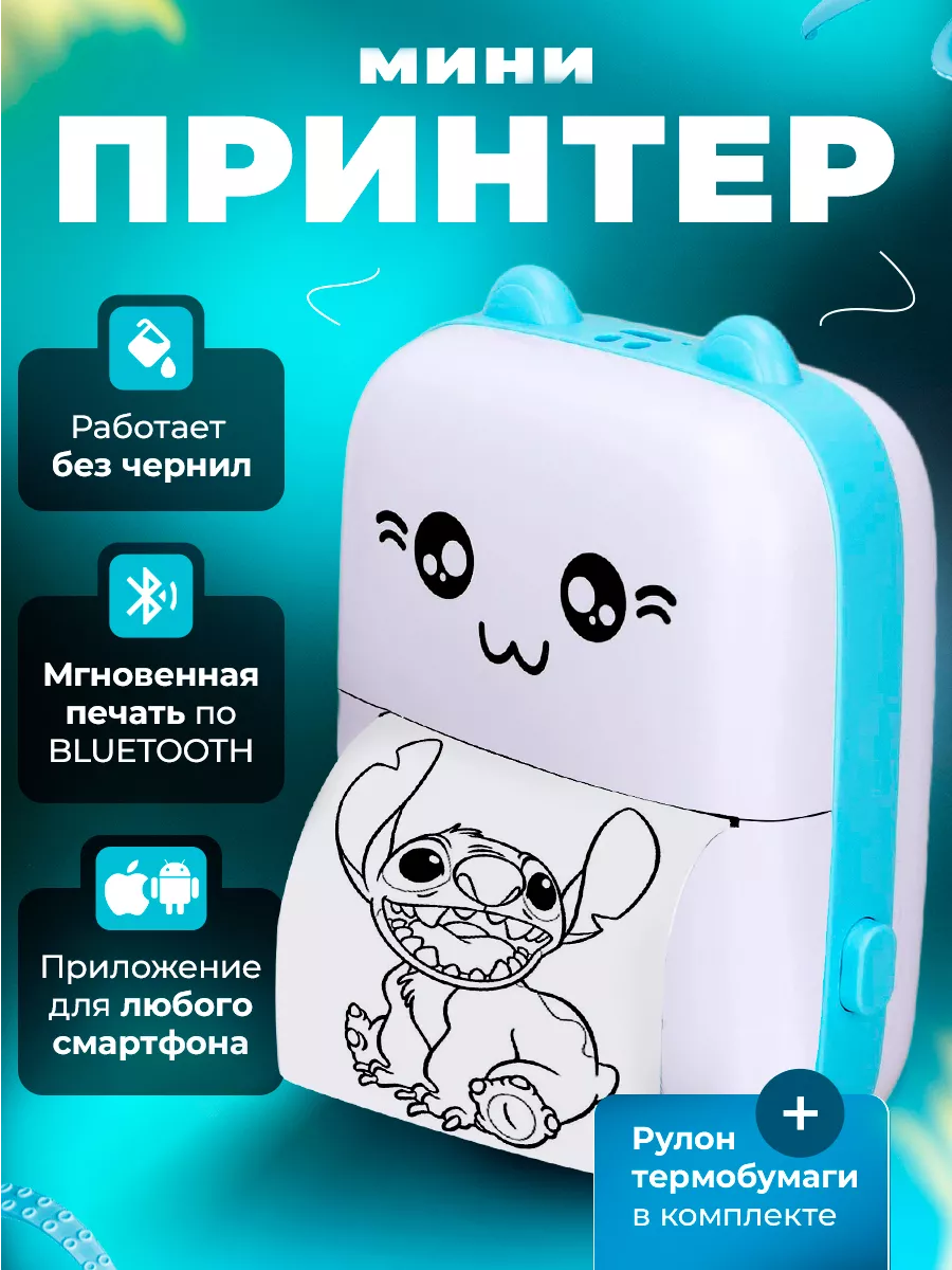 Отзывы на Портативный мини принтер для фото стикеров и наклеек, печать без чернил, bluetooth, цвет: синий