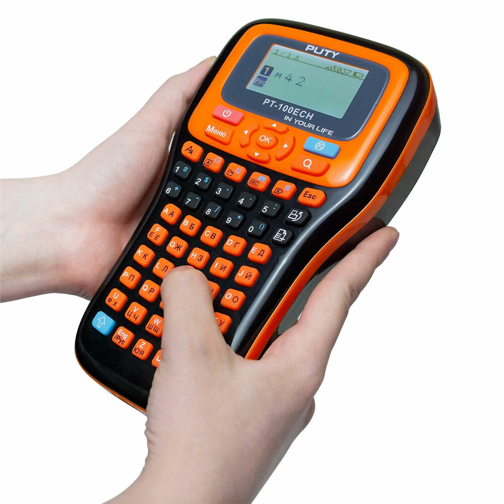 10 цен на Принтер для печати наклеек Puty PT-100ECH ручной рус/англ (аналог Brother PT E110, PT H110, Dymo D210) печатает только на лентах Vell CH