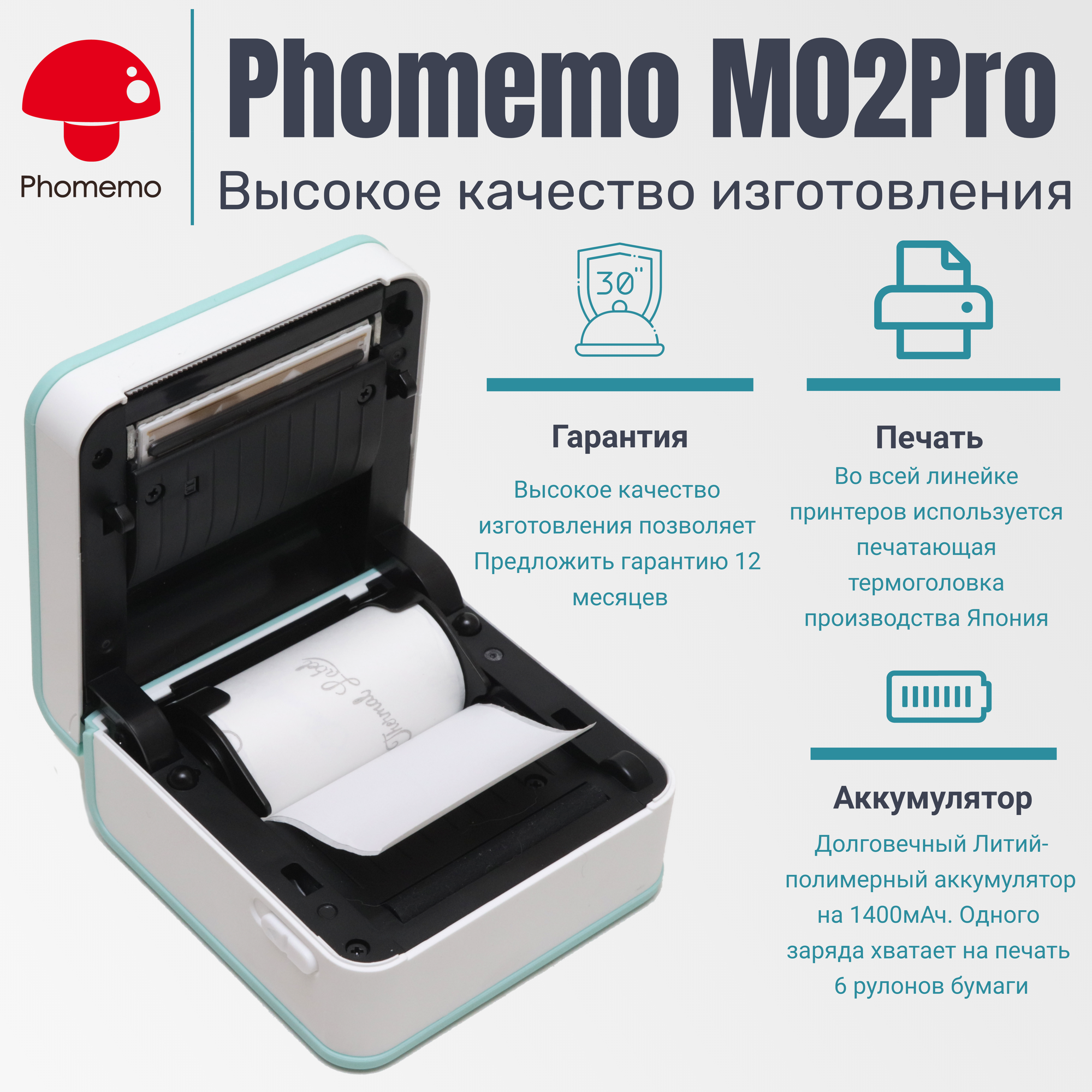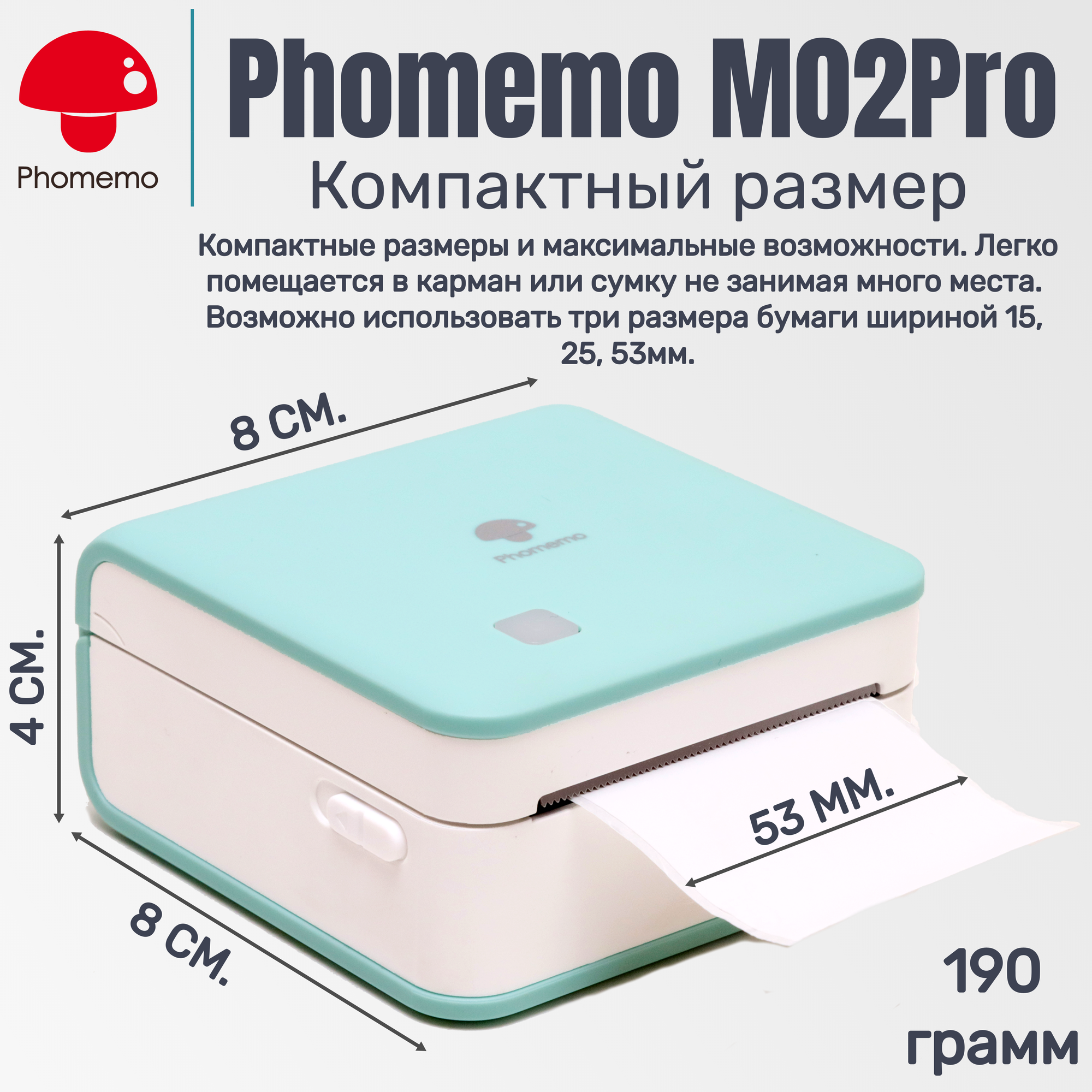 Портативный мини термопринтер Phomemo M02Pro для телефона, карманный принтер для печати этикеток, стикеров, наклеек, белый информация: