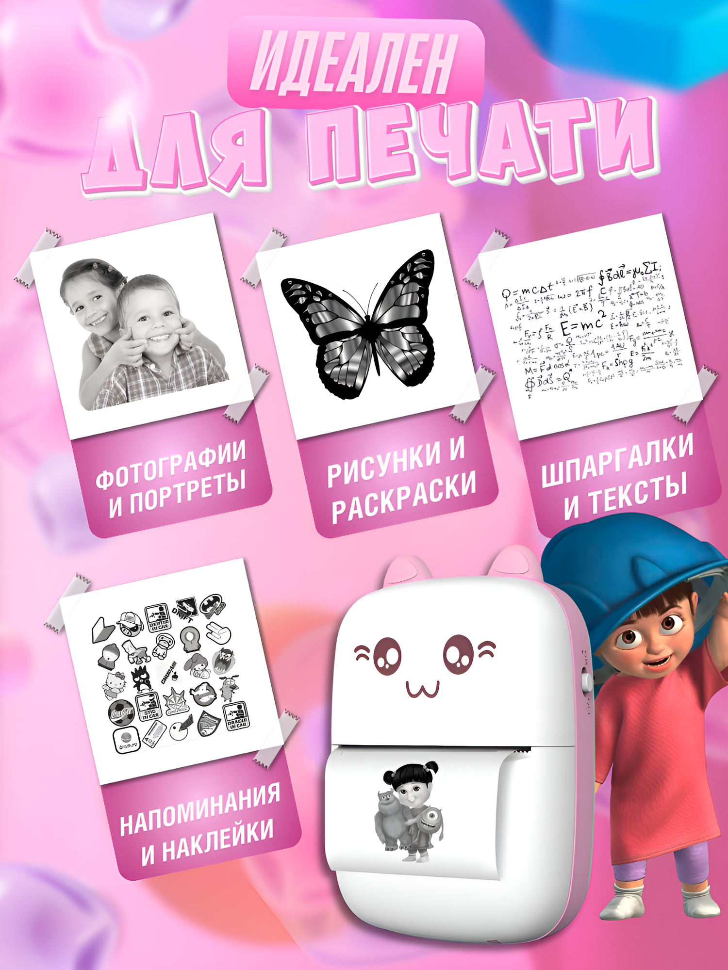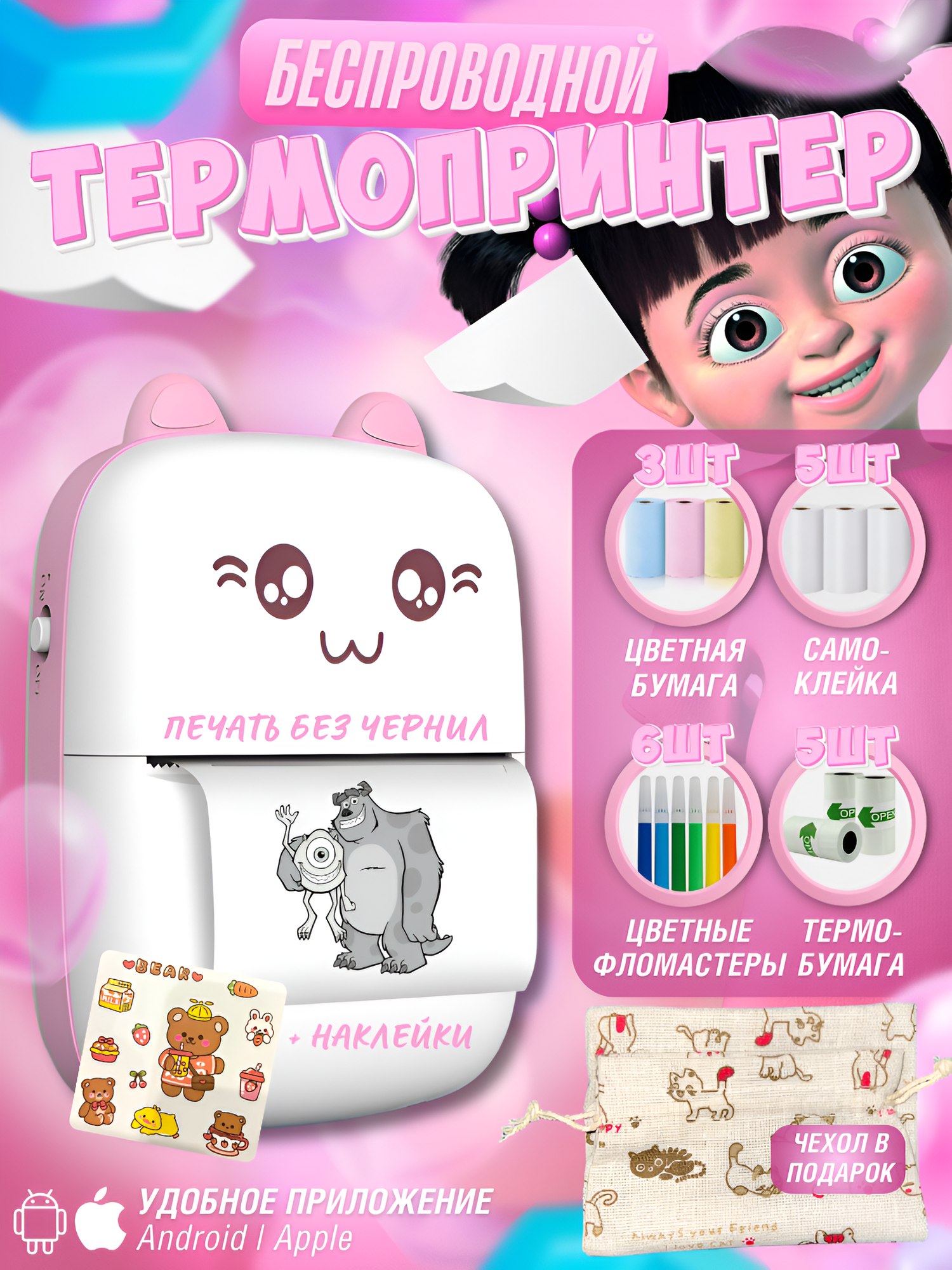 Мини принтер портативный для фотографий, этикеток, чеков, наклеек