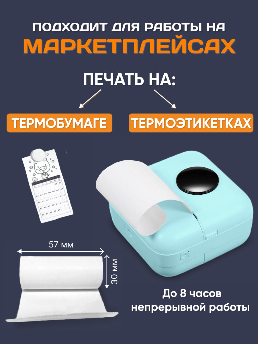 10 цен на Мини принтер зеленый 57х30мм VINI STORE: для взрослых и детей, Портативный термопринтер для печати штрихкодов