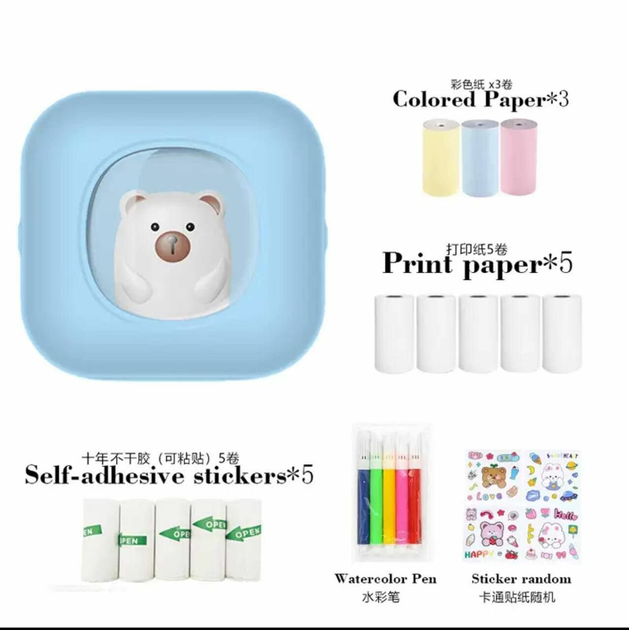 Беспроводной мини принтер / печать фото, этикеток и наклеек / голубой мишка информация:
