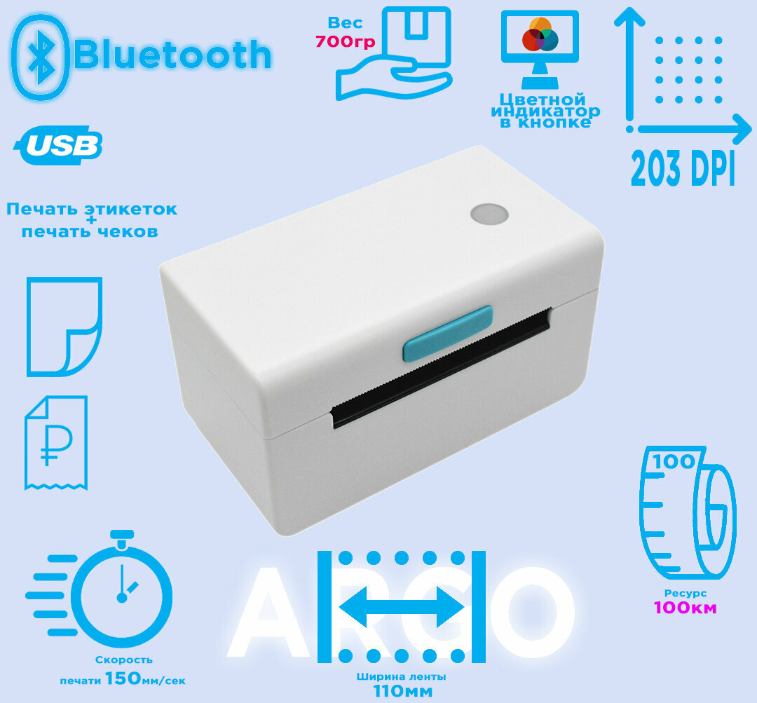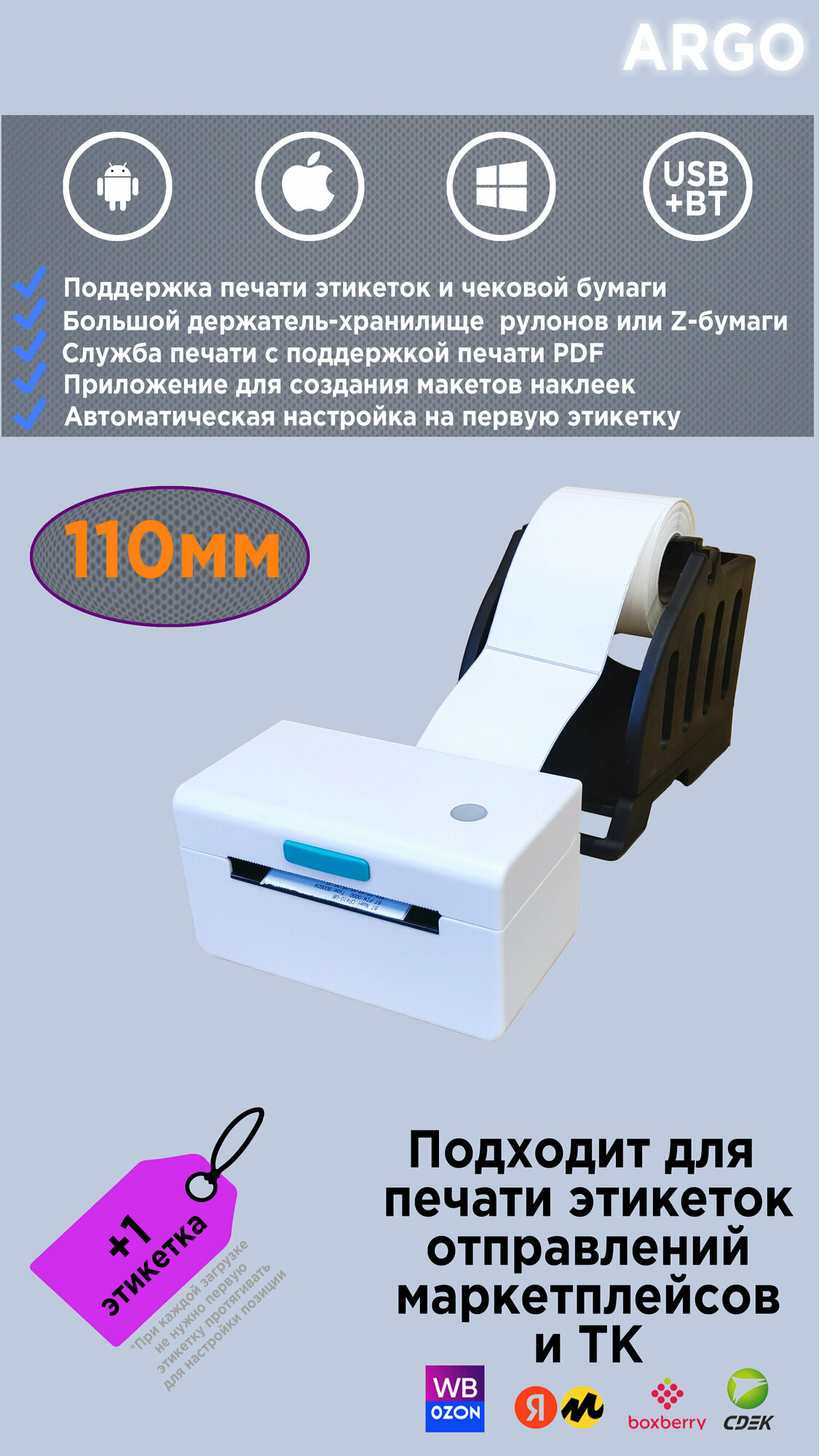 10 цен на Термопринтер этикеток 110мм Bluetooth+ USB х2РЕСУРС печати WP ATPC410-BT Этикетки отправлений озон Вайлдбериз.белый. Держатель этикеток черный в компл